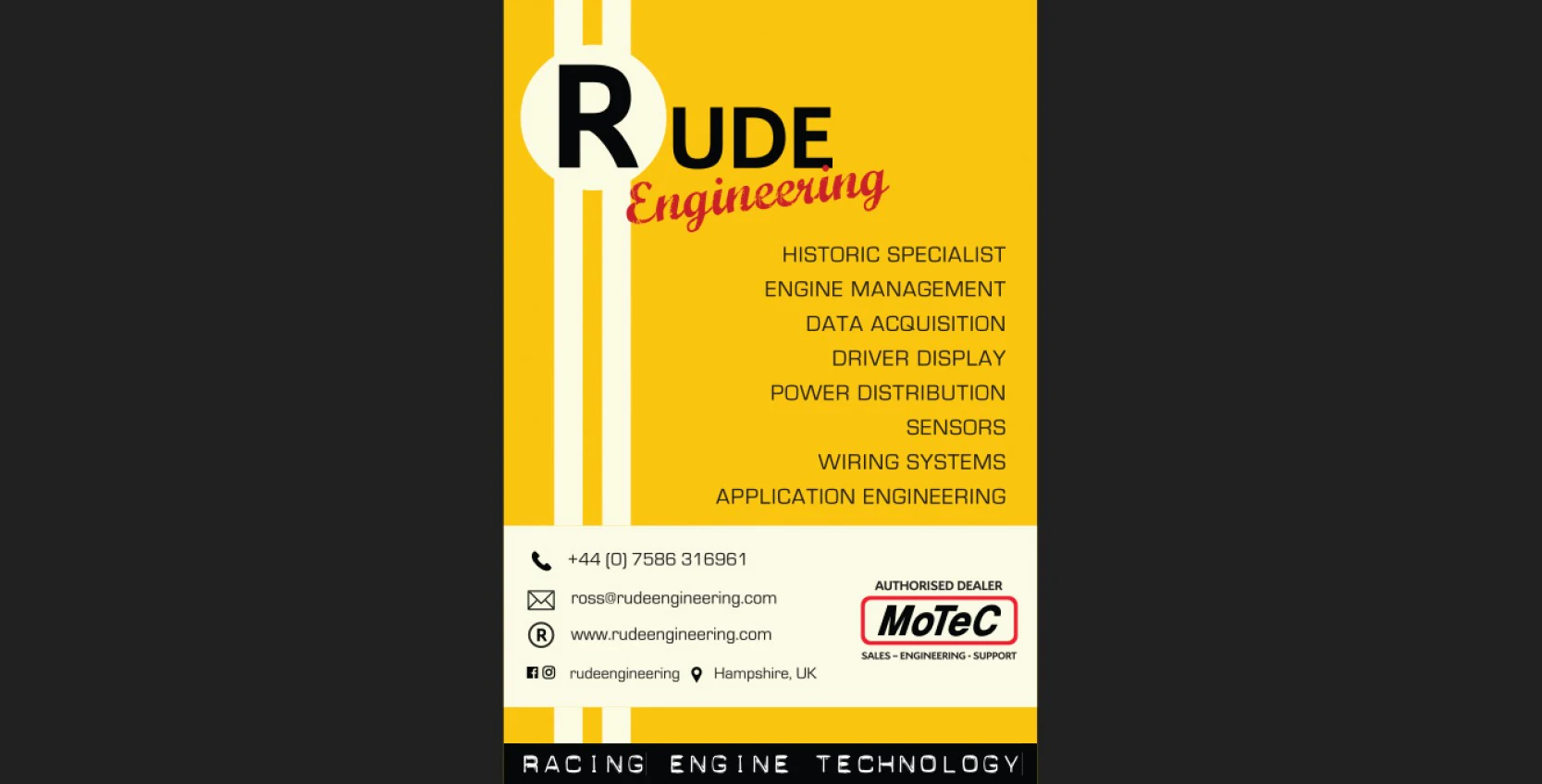 Spindrift Media has worked alongside Rude Engineering since its inception in 2016, supporting the brand with bold, distinctive motorsport design that matches its high-performance ethos.
